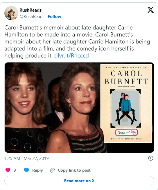 Emphasizing Hamilton’s death, Burnett focused on the fragility of life. She explained, “You don’t know. Life can change on a dime. So just be grateful for today what you have.” As a tribute to her daughter who had passed away, Burnett wrote and published a memoir in 2014 titled “Carrie and Me: A Mother-Daughter Love Story.”