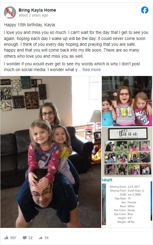 Kayla Unbehaun went missing in 2017, and her dad kept on hoping he would one day get to see his little girl again. Although he had no way of communicating with her or knowing whether she was safe and happy, he occasionally posted on social media to express how much he missed his daughter.