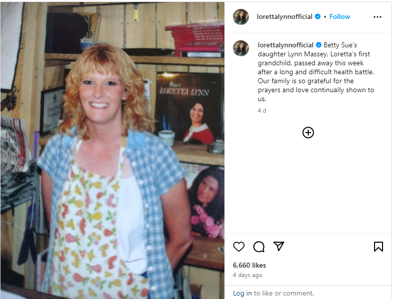 “Betty Sue’s daughter Lynn Massey, Loretta’s first grandchild, passed away this week after a long and difficult health battle. Our family is so grateful for the prayers and love continually shown to us,” they wrote on Loretta’s official Instagram page.