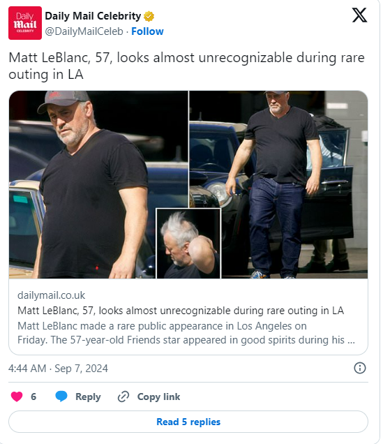 Matt LeBlanc makes a rare public appearance in Los Angeles after months out of the spotlight