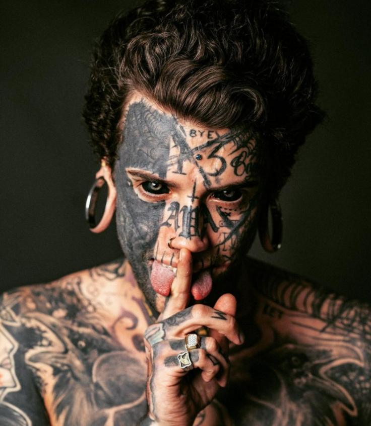 One of the most well know bloggers in Australia is Ethan Modboy Bramble. This in the 24 year old guy can’t be unnoticed on the street- cut tongue, cropped ears, black eyeballs, stretched nostrils, a sewn in navel and 95% tattooed body attract the attention of even the most indifferent passer by.