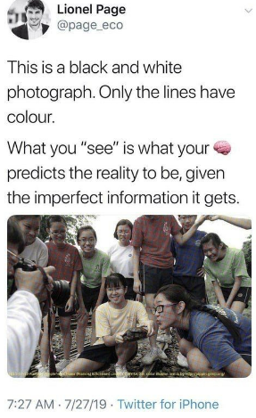 Our brain is tricked into perceiving colors that aren’t there. Even though the photo is in black and white, the arrangement of lines creates an illusion of red, green, and blue hues. This is a fascinating example of how our minds fill in details based on expectations.