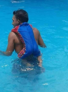 At first, it makes the photo look like the baby is headless. Upon deeper examination, you realize the baby is just positioned behind his father’s face, creating an illusion.