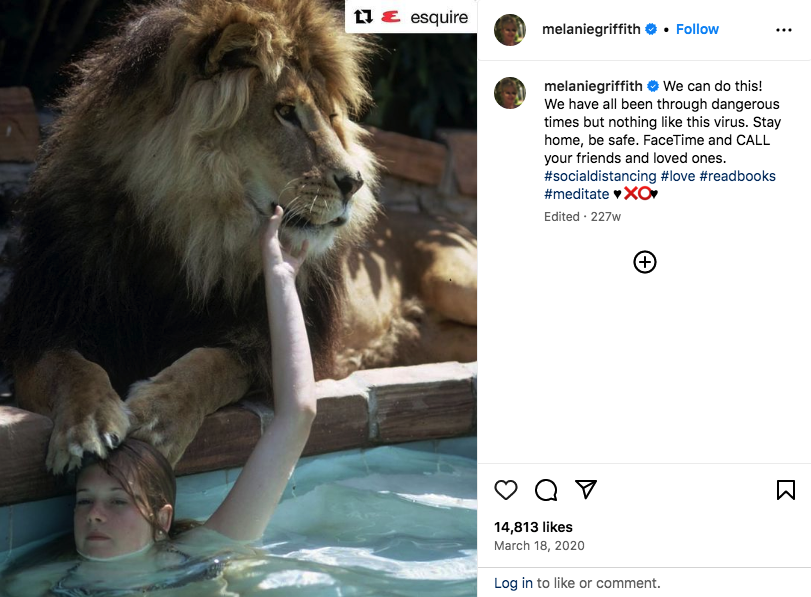 So, Melanie Griffith grew up with a pet lion, living with them in the 1970s at their home in Los Angeles, California.