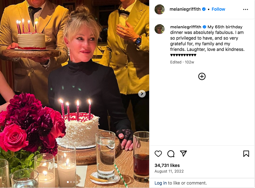 At 65, Melanie Griffith is happily single. Her last appearance on the big screen was in 2020, when she had a minor role and co-starred alongside her daughter Dakota in The High Note.